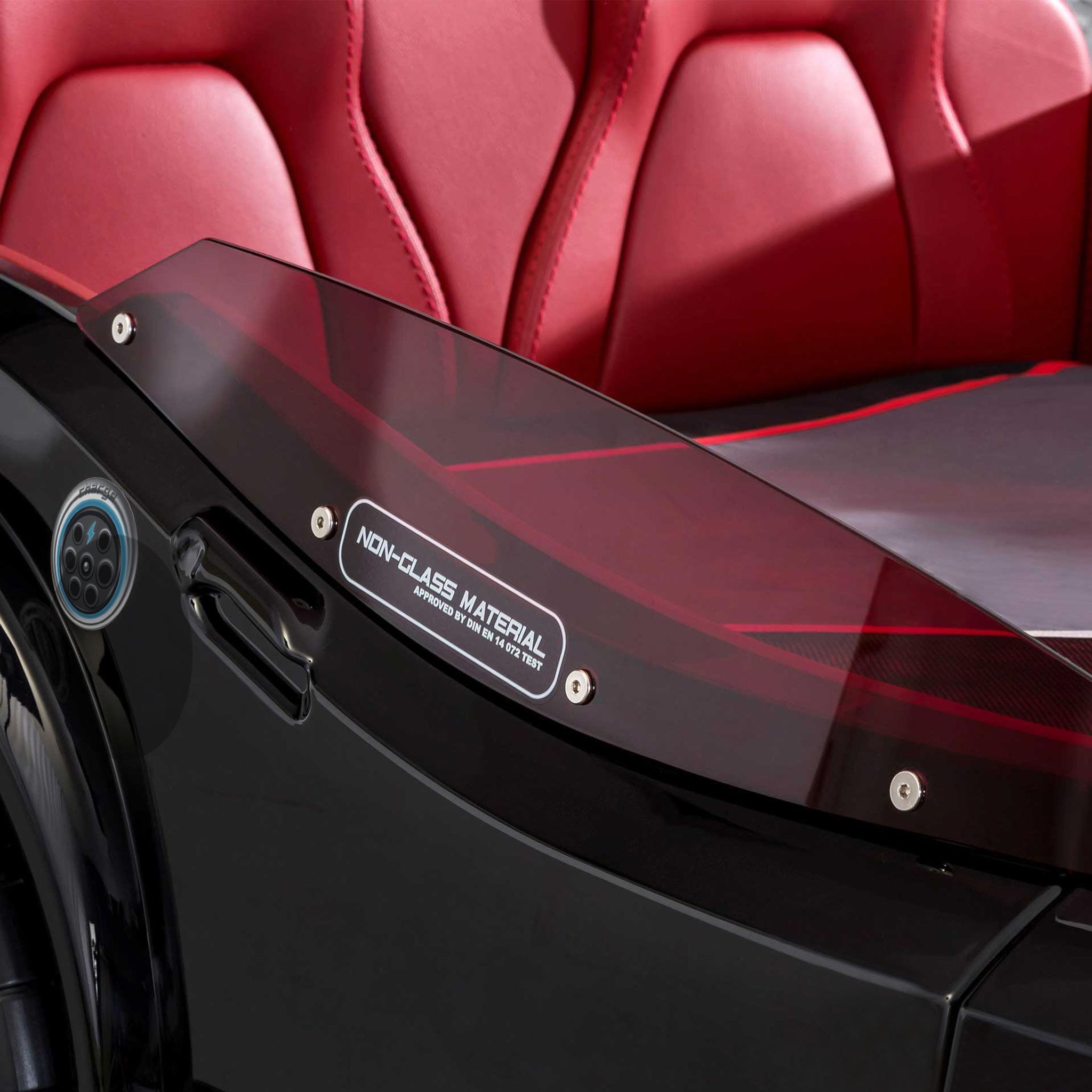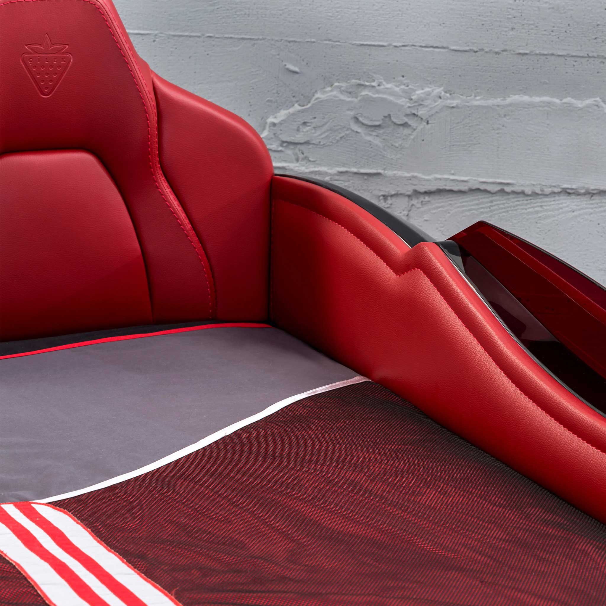 Cozy, Comfy & Safe for Little Racers – Snug vegan-leather headboard, soft interior padding, and window-style guardrails make this carbed cozy and secure. Toy-certified with no sharp edges. Ambient nightlight glow for bedtime calm. Designed for racers aged 3 to 12.