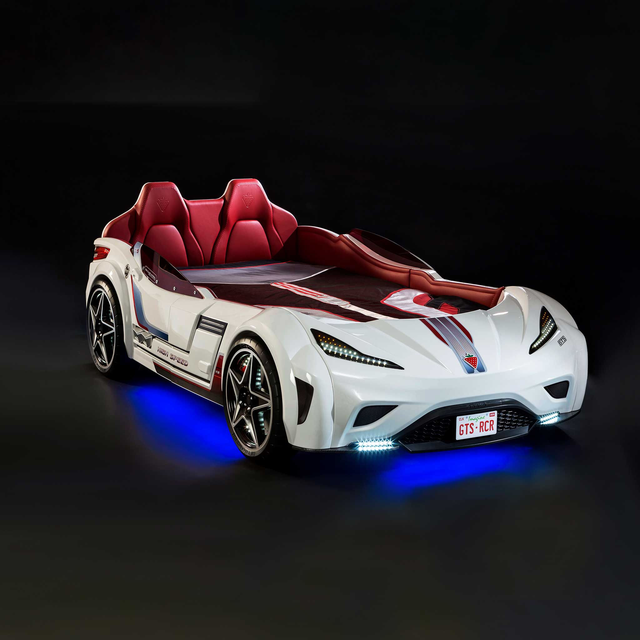 GTS EV race car bed comes in vibrant colors like red 🟥, white ⬜️, black ⬛, and blue 🟦